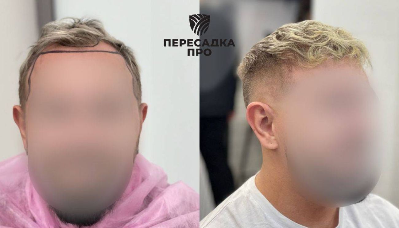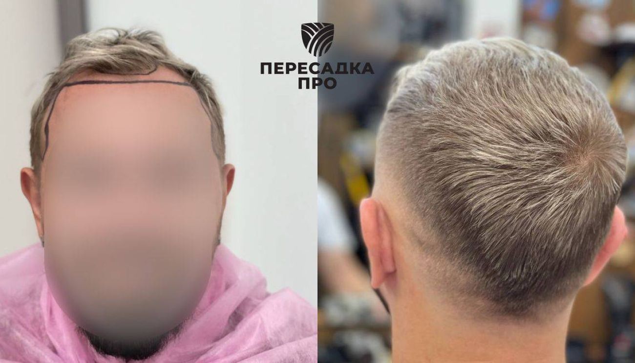 Пересажено 3000 графтов (метод пересадки волос — FUE), стадия по Норвуду — 3 (АГА с увеличением лобно‑височных залысин). Результат через указанный срок. Послеоперационное восстановление: PRP‑терапия — 1 курс, мезотерапия, космецевтические средства. Консервативное лечение: миноксидил 5 %.